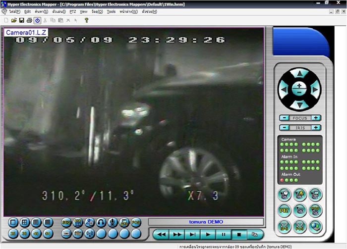 เมื่อกล้อง 1 เกิดการเคลื่อนไหวจะแสดงแผนผัง win1.hem และให้ relay 1 ที่เครื่องทำงานพร้อมเสียงร้องเตือนทางลำโพง